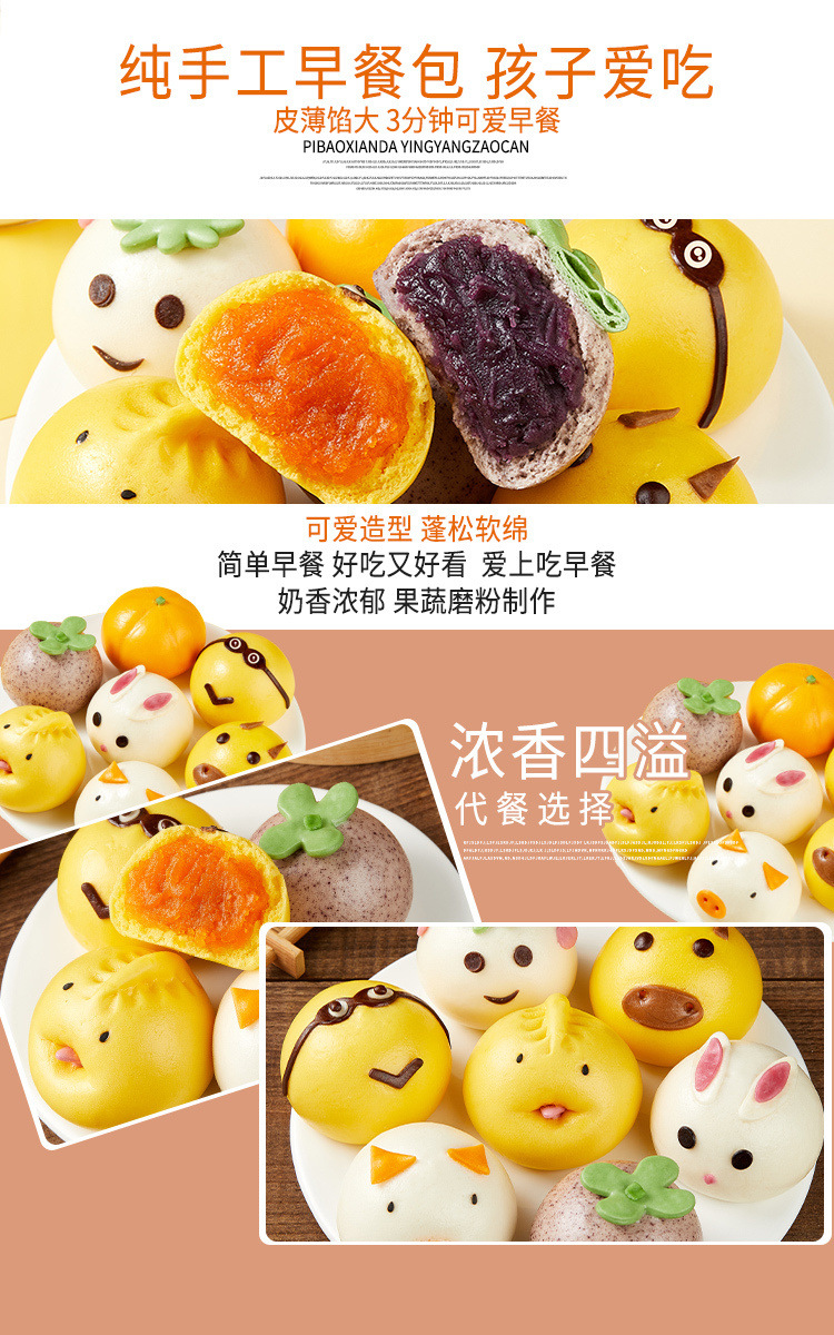 卡通包子批发儿童早餐辅食馒头小猪豆沙包馒头奶黄包半成品速冻
