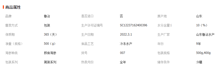 水产干货类 腌制水产品 海参