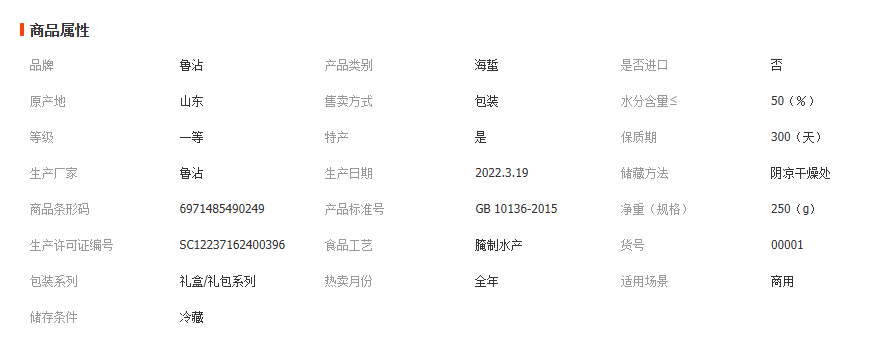 水产干货类 腌制水产品 海参