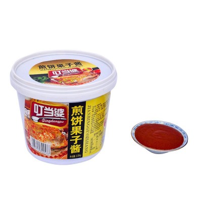 叮当婆食品河北有限公司是一家调味品生产、销售为一体的实业公司。旗下品牌有“叮当婆”“门头村”“京西明珠”。主要产品有烧烤酱、蒜蓉辣酱、煎饼酱、烤冷面酱、手抓饼酱、炒饭酱、烤牛排酱、鱿鱼酱、泰式甜辣酱、黄焖鸡酱、鸡蛋灌饼酱、烤肠酱、黑椒酱等。