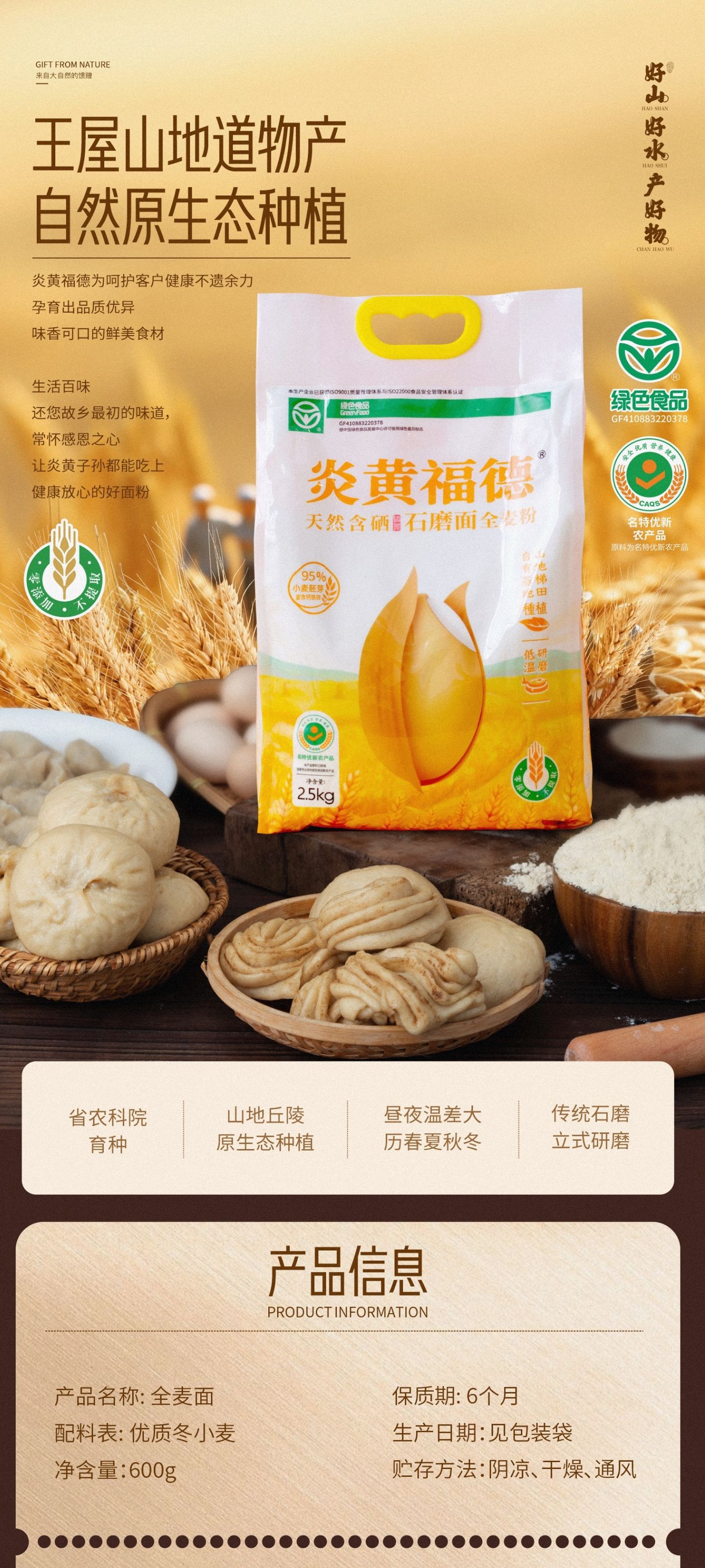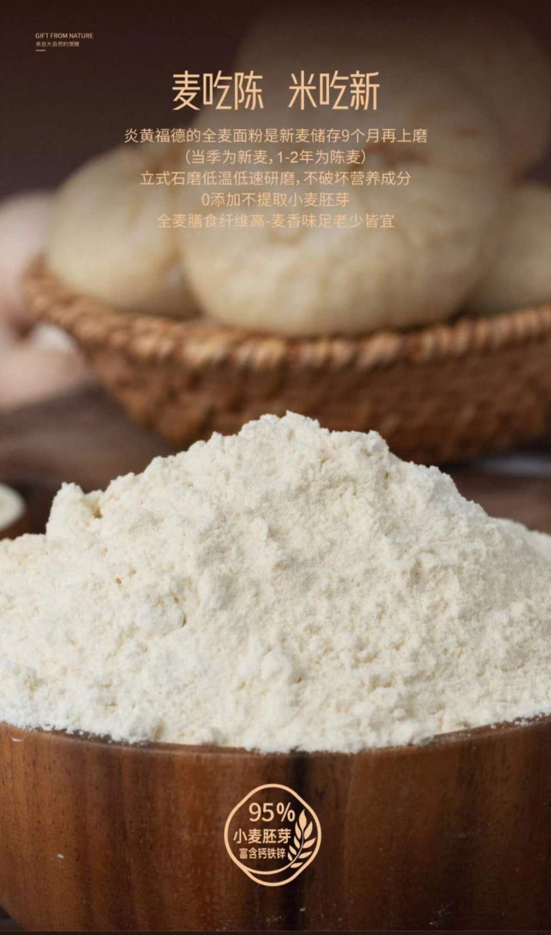 炎黄福德石磨全麦粉600g零添加不提取 富含多种营养 量大咨询客服