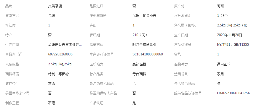 炎黄福德石磨面粉无添加不提取 富含多种营养成分 量大咨询客服