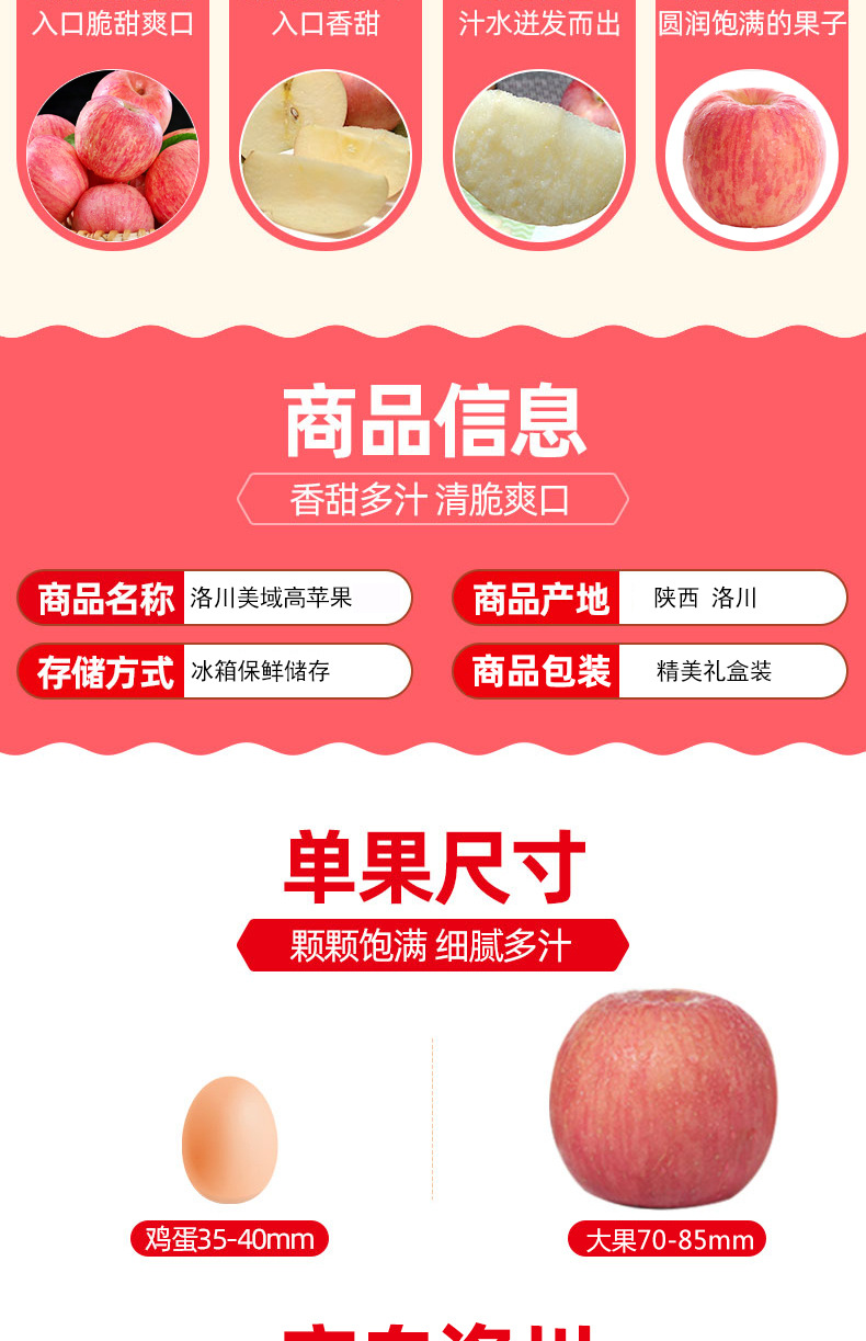洛川苹果供应链 美域高洛川苹果16枚80mm陕西红富士苹果延安苹果