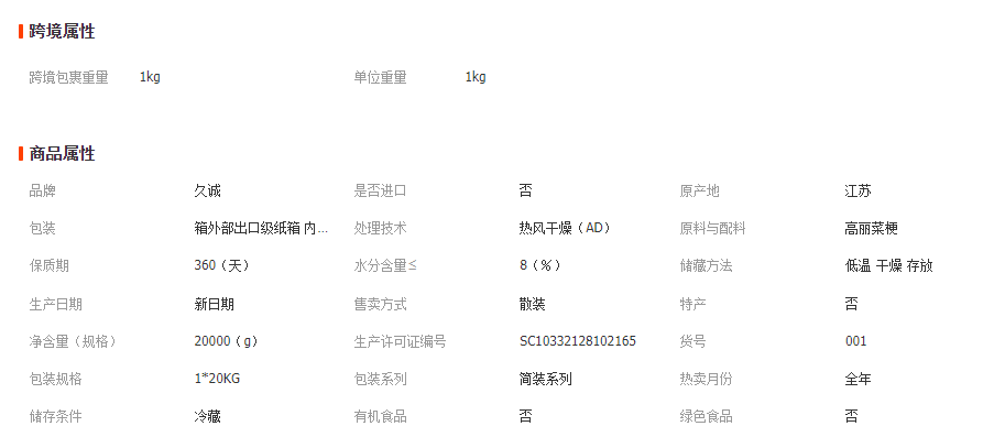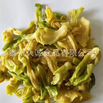 脱水高丽菜老梗 生产流程:原料进厂——选择整理(清洗)——切粒——漂洗——(烫煮)——沥水——推筛——大气压烘干——拣选——检验——包装。产品有很好的复水性,能保持蔬菜的新鲜原色原味及维生素。