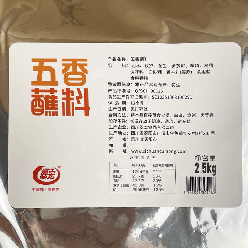 翠宏五香蘸料2.5kg5斤商用大包装烤肉烤串不辣干碟调味料