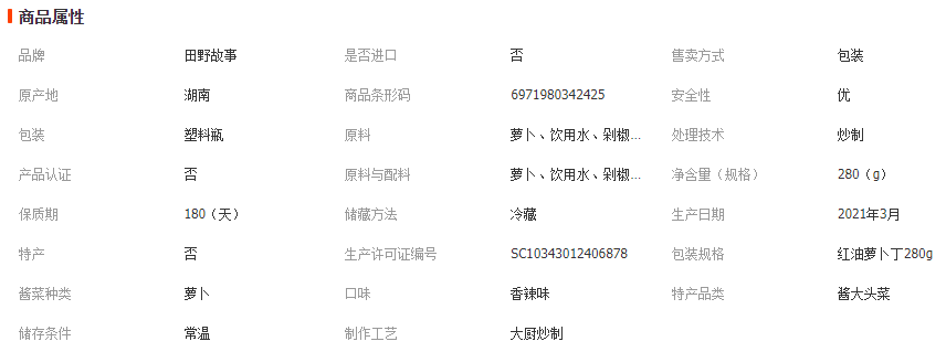 [田野故事]香辣萝卜干下饭菜辣椒酱菜湖南特产脆辣红油萝卜丁罐装