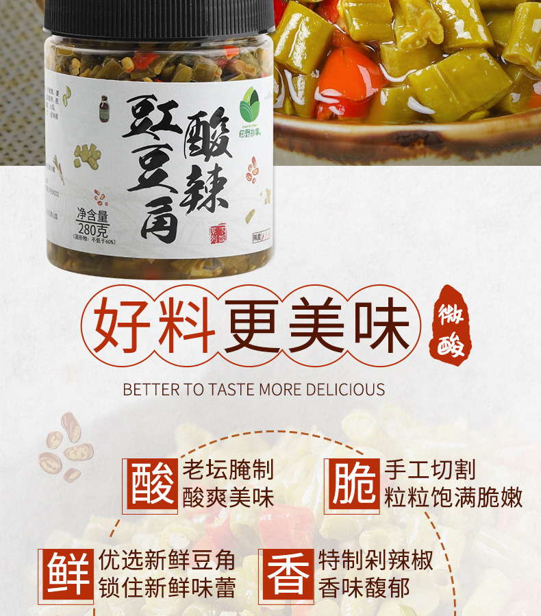 [田野故事]酸辣酸豆角即食下饭菜酸辣拌面酱湖南特产豇豆酱菜咸菜