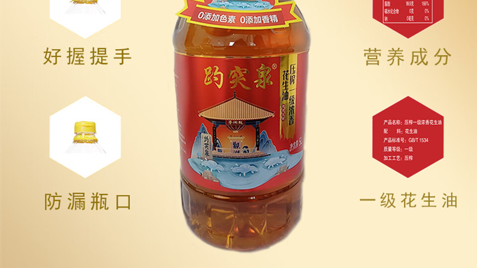 现货供应趵突泉物理压榨一级浓香花生油5L优质山东大花生