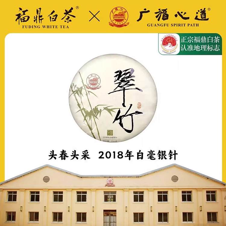 广福心道茶叶白茶2018年头春头采白毫银针翠竹小茶饼200g