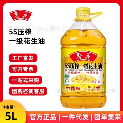 鲁花花生油5L物理压榨食用油5S一级压榨花生油5升团购福利批发