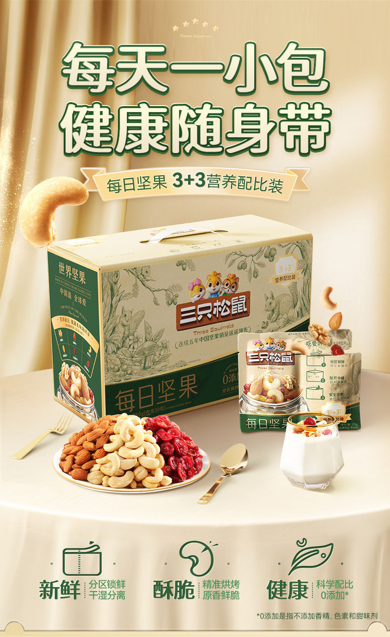 【三只松鼠-每日坚果750g】孕妇零食儿童干果4+3搭配独立包装整