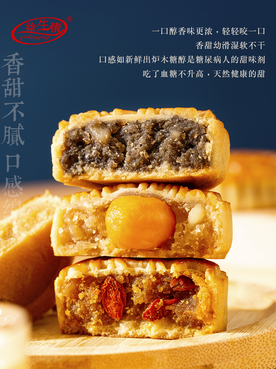 益生情铁棍山药无蔗糖月饼8味8饼礼盒木糖醇月饼零糖月饼中秋佳选