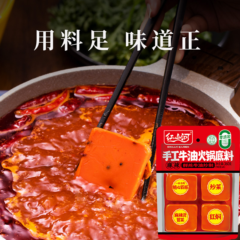 红山河小块包装手工麻辣牛油0添加火锅底料360g*16袋清真冒菜调料