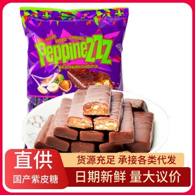 国产紫皮糖网红零食婚庆喜糖俄罗斯风味袋装花生巧克力夹心年货