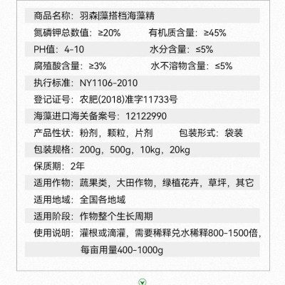 羽森海藻精粉剂20%氮磷钾根部追肥海藻酸腐殖酸人参适用
