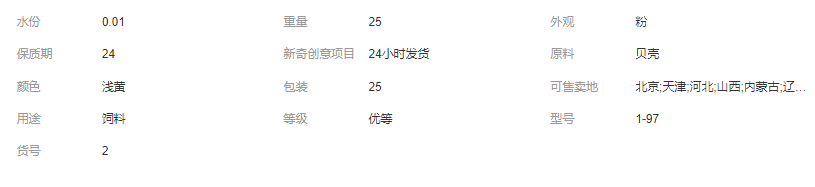 型号1-97 重量25 优等 24小时发货 浅黄 贝壳粉鸡饲 料