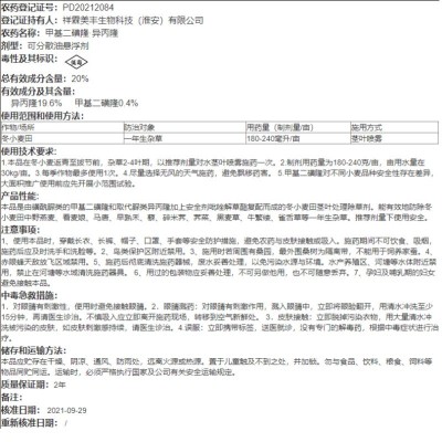 本网页所展示的有关【美丰瑞丰年20%甲基二磺隆·异丙隆小麦田禾阔双除除草剂_农资农机_南京江天农业科技有限公司】的信息/图片/参数等由5G盛昌农产品的会员【南京江天农业科技有限公司】提供,由5G盛昌农产品会员【南京江天农业科技有限公司】自行对信息/图片/参数等的真实性、准确性和合法性负责,本平台(本网站)仅提供展示服务,请谨慎交易,因交易而产生的法律关系及法律纠纷由您自行协商解决,本平台(本网站)对此不承担任何责任。您在本网页可以浏览【美丰瑞丰年20%甲基二磺隆·异丙隆小麦田禾阔双除除草剂_农资农机_南京江天农业科技有限公司】有关的信息/图片/价格等及提供【美丰瑞丰年20%甲基二磺隆·异丙隆小麦田禾阔双除除草剂_农资农机_南京江天农业科技有限公司】的商家公司简介、联系方式等信息。