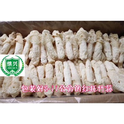 三级织金红托竹荪规格:肉质细腻厚实,菌柄基本为圆型,颜色呈乳白色,均在8-11公分,无断节、碎壳、杂质。